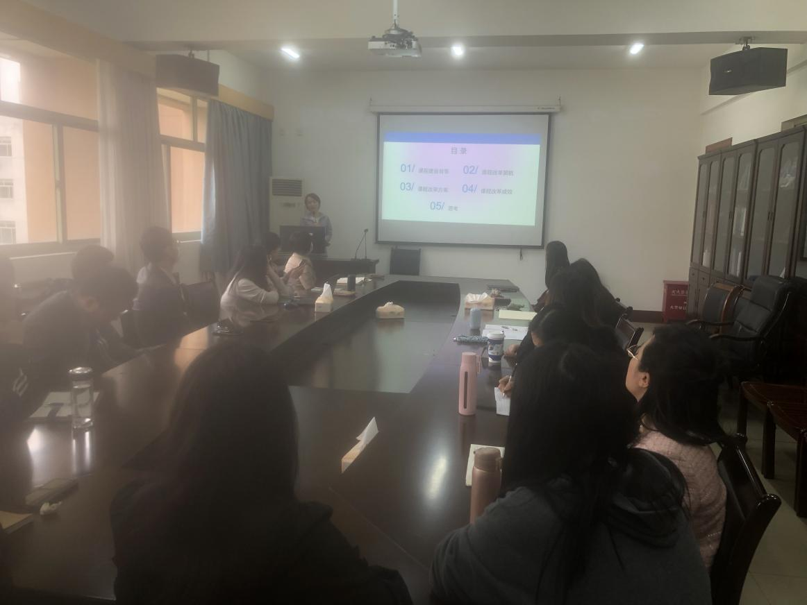 首先,朱忆琳老师以《线上线下混合式课程项目建设总结与思考—以<Audit and assurance>为例》为主题做了汇报和分享。朱老师从课程建设背景、课程改革契机、课程改革方案和成效以及思考等几个方面,就审计学双语课的具体痛点,分享基于“SPOC+MOOC”的线上线下混合式教学模式如何应用于审计学双语课程建设,旨在调动学生的学习积极性,提升双语教学质量。随后,与会老师与朱老师的课程建设分享进行了交流。