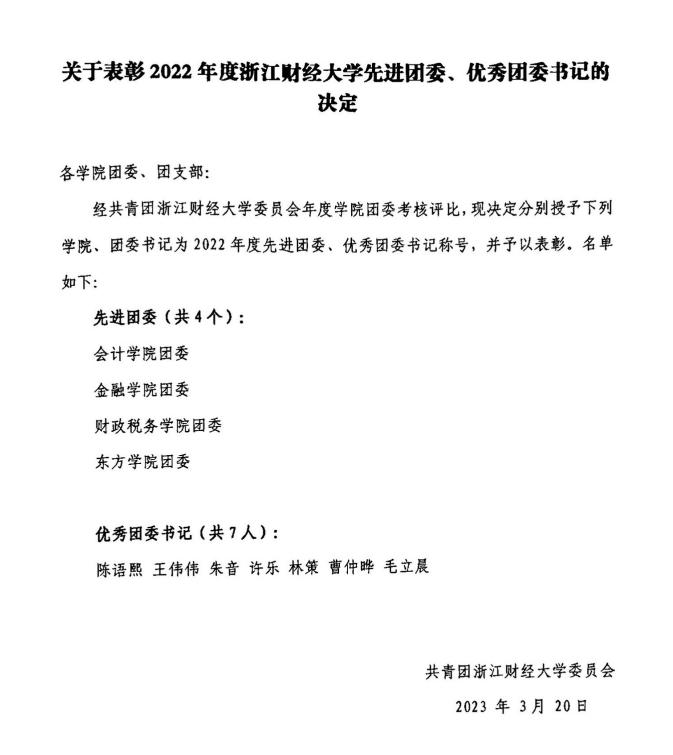 根据量化考核和总结材料成绩,会计学院团委以总分第一名的成绩荣获“ued体育 先进团委”称号。