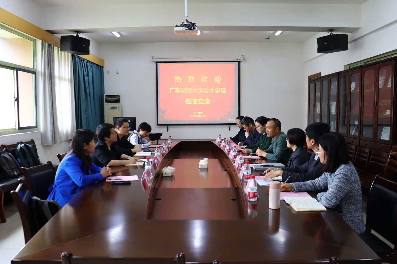 彭翠峰书记介绍了广东财经大学会计学院的发展历史与办学特色;雷宇院长介绍了学院学科建设、师资建设、人才培养等基本情况。