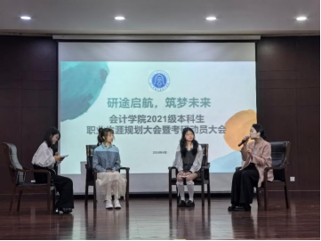 为帮助2021级本科生进一步明确生涯规划,增强发展动力,学院于4月25日下午在学术中心第一报告厅举行了2021级本科生职业生涯规划暨考研动员大会。会计学院党委副书记程晓东、副院长李宗彦以及2021级辅导员和各班学生参加活动。