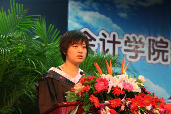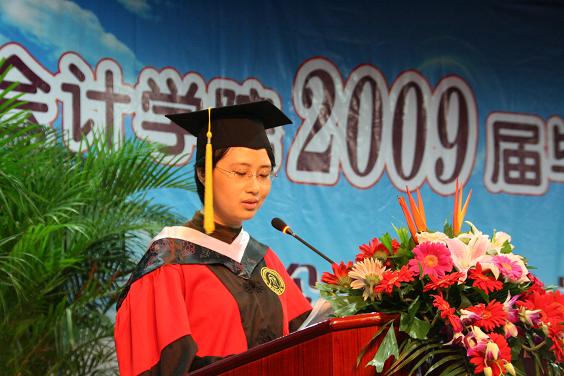 毕业典礼由张红英副书记主持。在庄严的国歌声后,汪祥耀院长在讲话中充分肯定了09届毕业生所取得的成绩,并围绕“忠诚、学习、创新、感恩”八个字对全体毕业生提出了殷切希望,在讲话中对毕业生顺利毕业表示祝贺,对会计学院所有教师、学生的家长的辛勤付出表示感谢。提出毕业生要以母校为荣,始终用一颗感恩的心在工作中回报母校和父母。之后,教师代表傅颀博士、毕业生代表朱乐琼同学、毕业生家长代表、在校生代表王爱琴同学先后发言,表达了对毕业生深深的祝福和“今天我以会计为荣,明天会计以我为荣”的赤子之情。
