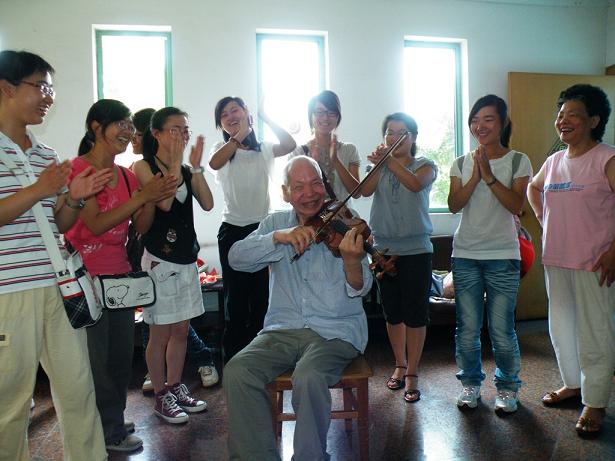 接下来,我队队员为老人们表演了唱歌跳舞等节目。令大家意想不到的是,老人们比我们更加能歌善舞、多才多艺。合着一位退休老师王爷爷演绎的柔和悠扬的小提琴声,队员们合唱了歌曲《送别》。另一位老奶奶也为大家表演了越剧。在场的老人热烈鼓掌,开心不已。