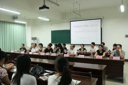 9月15日下午,我院在会计学楼303教室安排了专业介绍暨导师见面会。会计学大部分导师和2009级硕士研究生全部到会。会议由会计学院党总支副书记张红英主持。与会导师相继发言,向新生表示祝贺,同时鼓励新生做好规划,努力做一名优秀的研究生。最后研究生们也先后做了自我介绍并表示要珍惜时间、努力学习,不辜负家长和老师的殷切期望。(郑永。2009年9月17日。)