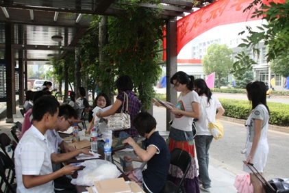 2009年9月14日,我院2009级硕士研究生入学报到。为做好迎接新生工作,为新生创造一个良好的入学氛围,研究生辅导员郑永老师、2008级硕士研究生孟庆超等同学在迎新现场指挥、服务。秋风习习、丹桂飘香,每个人脸上都洋溢着喜悦。会计学院李连华副院长、张红英副书记也到场指导工作并慰问。