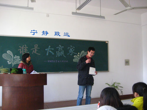 下午2时,现场活动基本结束。现场工作人员开始统计各组卖出的商品数量,计算买卖所得利润。之后在会计学院101教室举行了简短的分享、颁奖仪式。根据评选结果,win队、可望队分别获得一、二等奖,诞旦队和xyz队共同获得三等奖。获奖小组发表了活动感言和心得。最后,举行了现场捐款仪式,将所得利润共计109.5元捐献给爱心基金会。