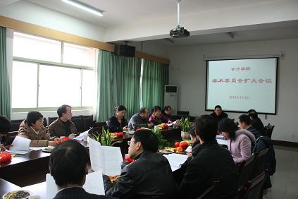 2010年1月5日下午,会计学院学术委员会召开了学期扩大会议。会议由汪祥耀院长主持。委员会部分成员和学院部分教授、博士参加了会议。