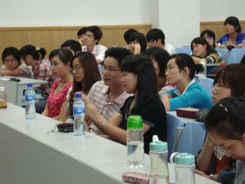 交流会上,张勉学长求职过程诙谐幽默的讲述,引来大家的阵阵欢笑和掌声,气氛异常活跃;邹莹莹学姐娓娓道来的外企面试方法、实习经历,以及求职简历制作小技巧的分享,则让大家受益匪浅;而陈益学长根据切身经历传述了自己考研过程中宝贵经验和体会,对大家提出了几点大学学习的建议,亦让大家收获颇丰;潘相武学长对公务员笔试与面试的全面解析,并以自己四年成长的现身说法,更让人印象深刻;张金晶学姐对出国全过程的详细介绍更为一些有出国意出国的同学消除了疑虑。而后的现场提问互动以及陆建良老师精彩的总结为本次活动画上了圆满的句号。