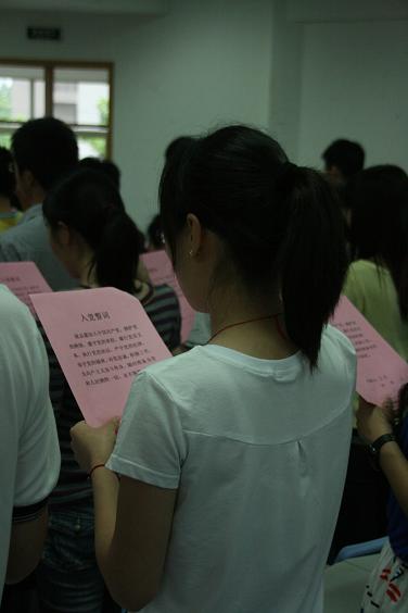 时光荏苒,岁月青松,会计学院即将诞生一批光荣的2010届毕业生。6月10日下午1点30分、2点20分,会计学院先后举行了两场庄严的党员宣誓仪式,出席仪式的有会计学院党总支副书记张红英老师,学办主任王敏老师,分团委负责人张淼老师等。本次仪式旨在深刻领会中国共产党的誓词要领,及时转接党组织关系,并且促进大学毕业生文明离校。