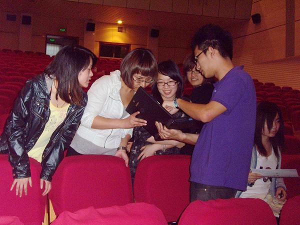 近期,晚会大型联排在校文化中心如期开展。精彩的话剧将会成为晚会中的一大亮点。话剧取材于大学生日常生活,以通俗幽默的形式表现了当代大学生的心路历程。从进入大学后的军训生涯、青春的美好情感至考研的颇多感触,一幅精彩纷呈的大学生活画卷缓缓铺展开来。此间年华,点点滴滴,缱绻低回。参加演出的同学们十分卖力,背台词、走步、定位、全身心投入表演。他们不厌其烦,一丝不苟,力求达到最完美的效果。