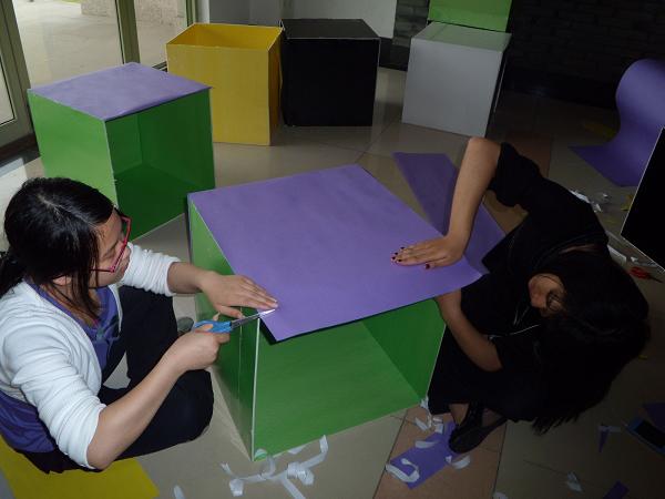 策划精致的外场,一个巨大的木质魔方,贴满毕业生们满满的回忆,薄纸,透出的点点光亮,是他们如琥珀般纯净澄澈的青春;二十二个纸制魔方,印满财院的角角落落,是散落在舞台的记忆格,开启毕业生们四年难忘的点滴成长。