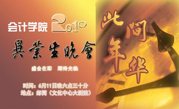 6月11日,18:30,邮筒(文化中心大剧场),即将举行会计学院06届毕业生晚会,现在正处于令人期待、令人心跳加速的倒计时阶段,每一分每一秒,都向整个财院蜕下点点神秘,我们,会计学院!毕业生晚会,正蓄势待发,敬候各兄弟学院的光临。