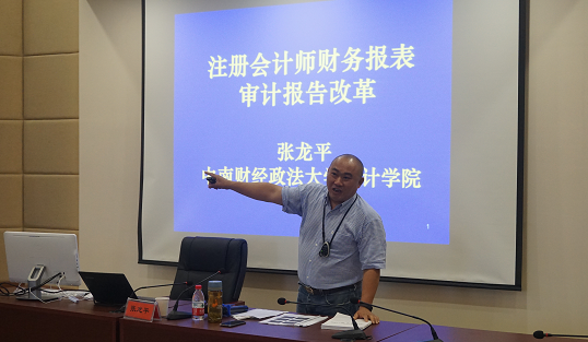 5月20日上午,“浙财会计学术论坛”2016年第7期在会计学院楼211顺利举行。中南财经政法大学会计学院张龙平教授应邀为我院师生作了题为“注册会计师财务报表审计报告改革”的学术讲座。本次讲座由邓川老师主持,财务与会计研究中心教师、审计系教师以及2015级全体研究生参加学习交流。