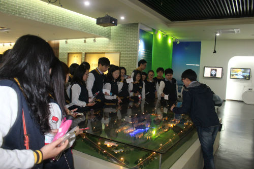 接着,校友一行在讲解员的带领下,参观校史馆。馆中珍藏着的文华小区模型将校友们的思绪一下子拉回初入大学的那一刻,校友们纷纷拿出手机,记录下这珍贵的回忆,并对母校如今的飞速发展感到无比自豪和欣慰。