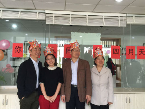 4月21日中午,我院教师在学院楼四楼玻璃房为本月生日的董黎明、骆铭民、钟晓鸣、郭德贵、顾慧莹、王敏、郭媚7位老师举办了一次意义非凡的集体生日会 ,成为学院日常工作和学习中一段欢乐有爱的小插曲。此次生日会主题为“你是人间四月天”,表达了对老师衷心的赞誉和祝愿。