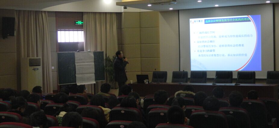 首先,宋寒斌所长详细介绍了普华会计师事务所的具体情况,涉及事务所主要业务介绍、岗位设置、员工管理、工资福利等等各个方面,阐述会计师事务所发展的理 念,诠释会计师工作的深刻意义。接着,王培璐副所长围绕审计执业规范体系与质量控制研究做了详细的解读,重新审视注册会计师职业的特殊性和工作岗位的责任 感,强调注册会计师是我国会计人才队伍的重要组成部分,是《国家中长期人才发展规划纲要(2010-2020年)》和国办[2009]56号文件的重要举 措。王培璐副所长重点介绍质量控制准则第5101号,结合普华自身发展的经验,围绕质量控制总则、定义、目标、要求等进行了深入浅出的介绍和解读。