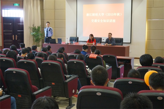 10月20日下午ued体育 (2015年秋)交通安全知识培训讲座在会计学院楼211报告厅顺利举行。会计学院党总支书记张红英,校保卫处副处长许世甫 出席了讲座。杭州市交通警察大队支队下沙大队董言志警官围绕“平安出行、珍爱生命”的主题为我校交通志愿者、会计学院及城乡规划学院的学生干部展开交通安 全教育。