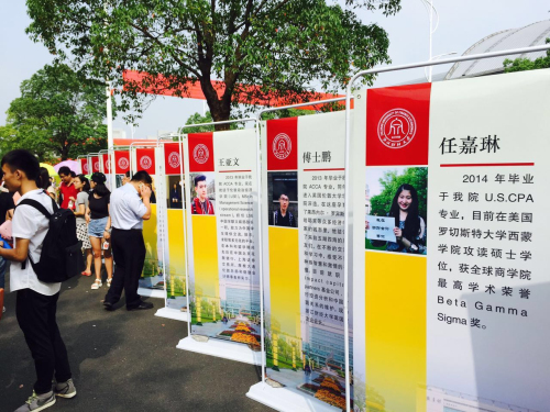 九月清风,吹进浙里,今天我们迎来2015级的莘莘学子。在文化长廊,迎新工作有序 而顺利的进行着。校党委书记陈根芳、校长李金昌、校党委副书记钟晓敏、纪委书记陈金方、会计学院党委书记张红英、副院长邓川、党委副书记张虹等院各级各部 门领导莅临现场,关心各位新生家长的需要,努力给大家创造温馨“会”乐的氛围。至此,新生迎新工作圆满完成。