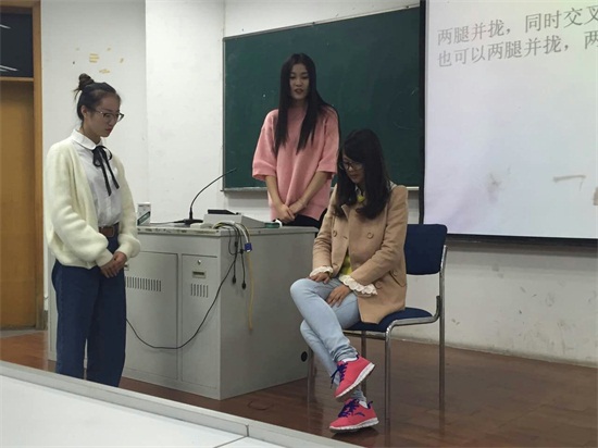 首先,同学们先一起阅读中国古今礼仪常识、文化著作,播放习近平、彭丽媛同志外交活动视频,对中国的礼仪和文化进行深层次的学习和探索。接 着,校模特队通过PPT和现场示范的形式为学生们进行站姿、坐姿和日常礼仪的教学。让女生们惊叹不已的除了模特队员们姣好的身材,更是她们一举一动中透露 出的温文尔雅、落落大方。随后学生会副主席俞春涛同学对她们进行了生活中交际礼貌注意事项的讲解。期间,同学们积极响应上台模仿学习,在此过程中获益匪 浅。