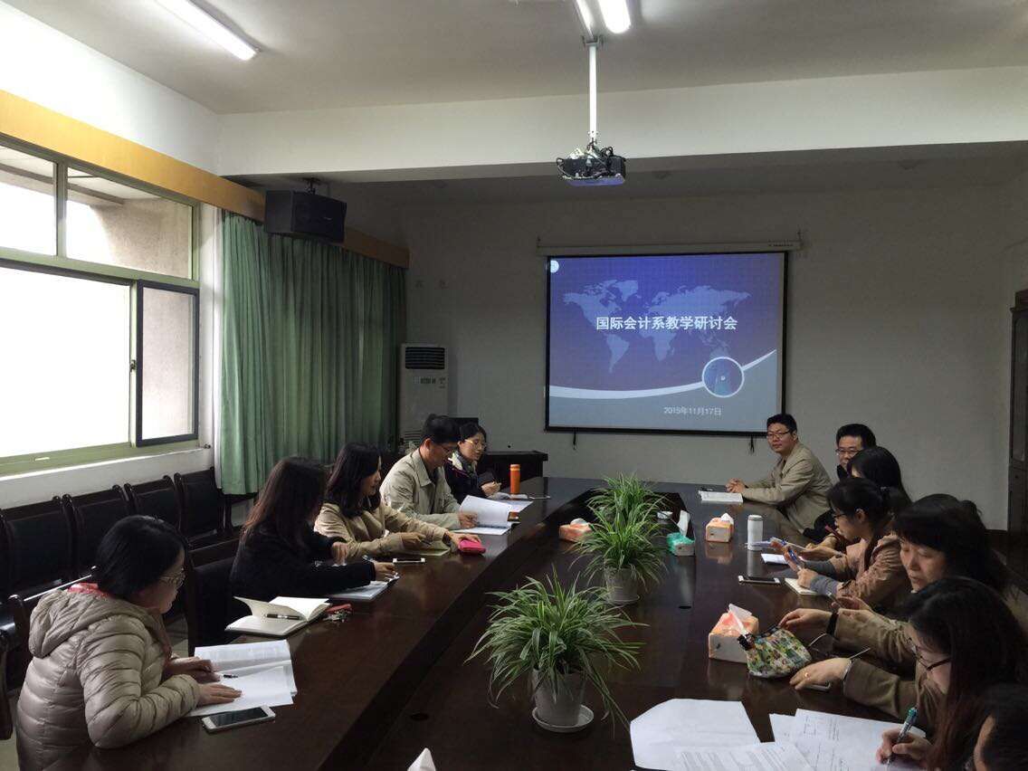 2015年11月17日下午,会计学院国际会计系在会计学院楼406召开了教学研讨会。会议由国际会计系主任傅颀老师主持。首先,主管教学工作的于永生副院长对ACCA、AICPA、中加班及CPA CANADA等国际化项目的发展现状做了相关介绍,并指出仍需改进之处。国际会计系各位老师就如何提高国际化项目教学质量展开了热烈的讨论。