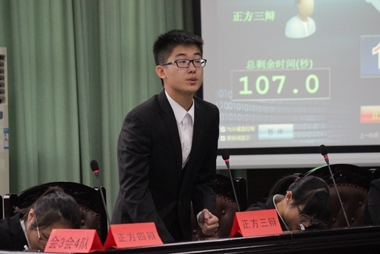 接下来是同样紧张而激烈的季军争夺战。该场的辩题是“互助精神和竞争精神哪个更重要”。正方审一审二代表队支持“竞争精神比互助精神更重要”的观点,而反方财三审三代表队认为互助精神更重要。双方辩手见解深刻,口才出色,赢得了台下观众的阵阵掌声。最后,审一审二代表队获得了胜利。