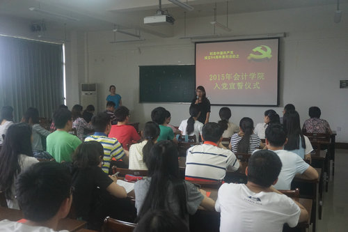 为庆祝中国共产党成立94周年,7月1日下午,会计学院党总支在学院楼303会议室隆重举行了2015年新发展党员的入党宣誓仪式。学院党总支书记张红英、副书记张虹、团委书记陆建良、学办主任王韵、各学生支部书记以及新党员出席本次活动,仪式由总支副书记张虹老师主持。