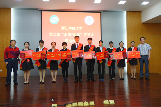 经过两个多小时的比赛,我院学生周晟佳、鲁露从21位候选人中脱颖而出,荣获第二届“浙农—阳光”奖学金。钟晓敏副书记和王自强副总经理分别为获奖10名学生颁发了每人5000元“浙农—阳光”奖学金和荣誉证书。