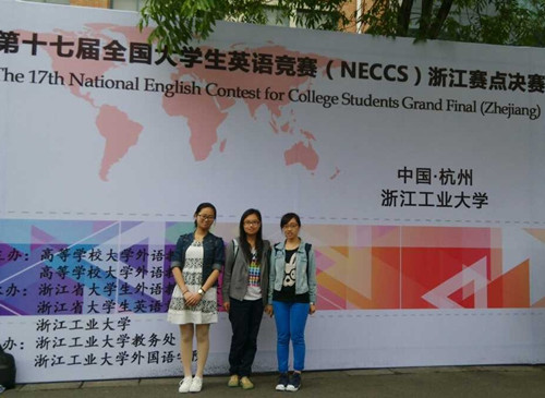 5月10日,全国大学生英语竞赛浙江赛区决赛在浙江工业大学屏峰校区举行,我校三位参赛选手均出自会计学院,他们表现出色,取得佳绩。全省共决出特等奖 18名,我院12中美班郑依伦同学取得全省第一的佳绩,13ACCA1班的鲁蕴睿和14中加1班的汪炎言两位同学分获第7名和第11名。这是我校参加该赛 事以来取得的最好成绩。三位同学还将同其他特等奖获得者一起参加全国总决赛,角逐各类奖项。