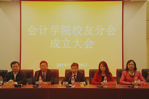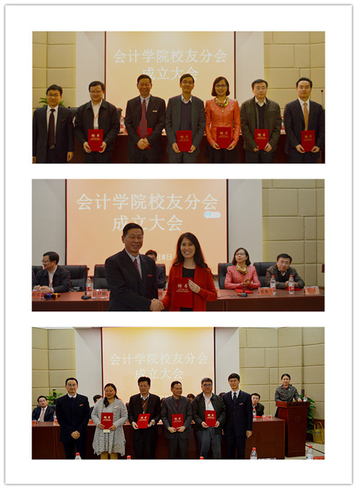 会上,会计学院党总支书记张红英介绍了校友分会的筹备情况,副院长于永生、副院长邓川分别宣读了理事会成员的建议名单,在校友们热烈的掌声当中产生了第一 届理事会成员。汪祥耀、胡少先、石道金、刘根宏、裘菊兰、曹国熊、章晓洪、吴溪当选为名誉会长,余俊仙当选为会长,张红英当选为执行会长,张将勇等当选为 副会长,张虹当选为秘书长,杨海涌等当选为副秘书长,陈建根等当选为理事。卢新波校长为名誉会长颁发了聘书,汪祥耀院长、于永生副院长、邓川副院长分别为 会长、副会长颁发了聘书。