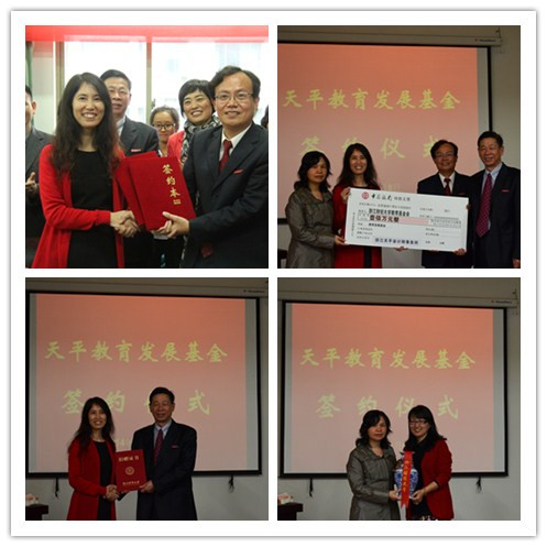 11 月8日正值学校四十周年校庆之际,我院与天平会计师事务所签订战略合作协议,并隆重举行了“天平教育发展基金”捐赠签约仪式。副校长、教育基金会秘书长黄 建新,基金捐赠人天平会计师事务所董事长余俊仙、天平会计师事务所管理合伙人谢玉琪,校友浙江金海棠投资管理有限公司总裁陈建根、浙江省财政厅直属机关党 委专职副书记金洪根,会计学院院长汪祥耀,总支书记张红英,人事处处长邵毅平,会计学院副院长于永生,副院长邓川,总支副书记张虹以及学院相关部门老师出 席了此次捐赠仪式。仪式由校友办副主任李晓峰主持。