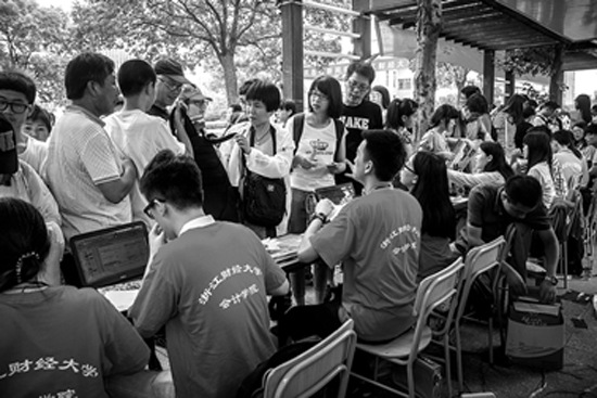 九月一日,为了迎接新生的到来,ued体育 会计学院为新生提供了“细心、贴心、耐心、温心”的服务,还专门针对贫困学子开设了“绿色通道”。图为在迎新现场,学校志愿者为前来报到的新生和家长们答疑解惑,帮助他们解决问题。