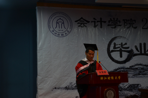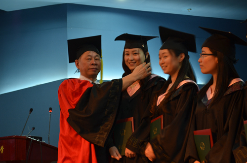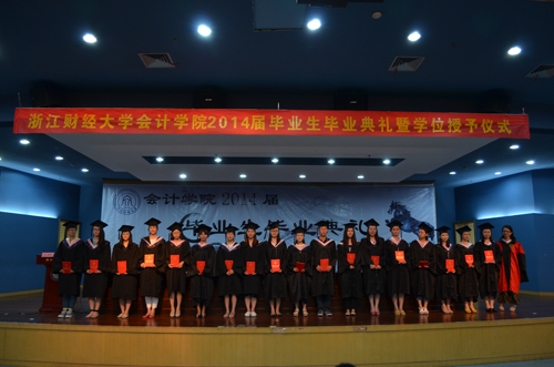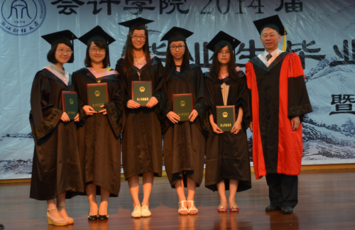 最后,于永生副院长、邓川副院长为会计学院2014届全体毕业生颁发毕业证书、学士学位证书,汪祥耀院长、张红英书记为毕业生一一拨穗。