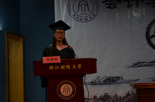毕业典礼在雄壮的国歌声中开始。副校长卢新波首先致辞,他肯定了会计学院是学校发展的中坚力量,对会计学院的广大毕业生对学校付出的努力和作出的贡献表示感谢,也祝愿莘莘学子在今后的人生中,一路平安,一帆风顺。