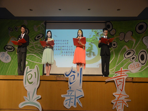 本次晚会以“青春、创新、创业”为主题,共分为“青春舞曲”、“创新交响”和“职场摇滚”三个篇章。在张虹副书记和李惠丰女士致辞后,一曲激情的“bar bar bar”瞬间活跃了现场气氛。伴随着悠扬的旋律,以“五月,你从春天走来”为主题的诗朗诵展现了青春的激扬。在“创新交响”环节中,阳光蚂蚁工作坊的“快 乐狂想曲”生动再现了寝室学习的那些趣事,令现场观众不由捧腹。而之后的手语表演和小品“非你莫属”更将“职场摇滚”这一篇章演绎得淋漓尽致。