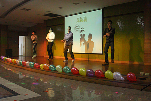 晚会在男生们《江南style》的动感热舞中拉开了序幕,银色灯光下这群舞者们活力四射的表演为晚会的进行营造了热烈的气氛。晚会的节目丰富多样,异彩纷 呈,诙谐幽默的小品、婉转悠扬的古筝、动人心弦的歌声、动感十足的舞蹈一一呈现在同学们的眼前。由于本次晚会采取的是将节目与游戏结合交叉进行的方式,如 心有灵犀、你划我猜等,不仅让同学们淋漓尽致地表现自我,而且让我们欣赏到了老师们的多才多艺,更是促进了师生之间的互动交流。晚会尾声的放飞心愿纸飞机 更是将晚会的气氛推向了另一个高潮。
