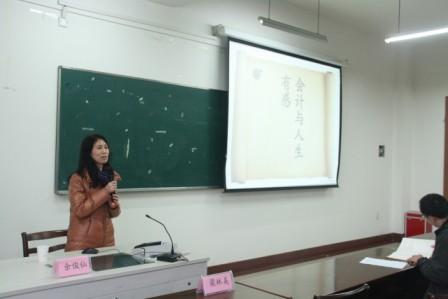 余俊仙女士讲述了会计的含义、会计与人生的关系等,并交流了自己对会计的人生感悟。紧接着,余老师还引导我院研究生要有人生目标,她说“什么样的目标决定什么样的人生”。最后,余老师还和同学们一起分享了博大精深的佛学理念。