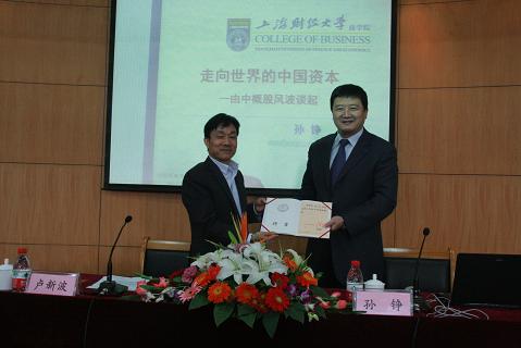 2012年11月2日上午,上海财经大学副校长、博士生导师孙铮教授受聘为我校兼职教授,我校副院长卢新波教授为其颁发了聘书。受聘仪式结束后,孙铮教授做了题为“走向世界的中国资本——由中概股方波谈”的学术报告。会计学院部分教师、研究生和本科生参加了此次报告会。