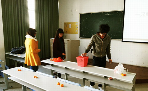 与此同时,12 ACCA2班举办了“一元钱”工程主题团日活动。团日活动主要介绍了“一元钱”工程的发起原因、参加捐款的方式、资金监督和使用情况,以及受助学生获得捐 赠资金的过程等。团日活动的最后,12 ACCA2班团支书在班级中发起了“一元钱”工程的捐款活动。当天,学生马列学会、学生理财学会、文艺部、阳光蚂蚁工作坊、12 ACCA1班等15学生组织和班级也以不同形式开展了一元钱爱心募捐活动,现场参与人数达400人。