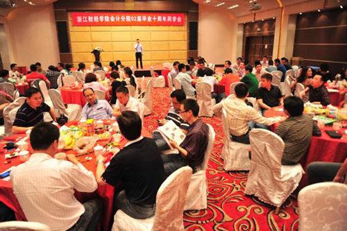 近日,02届会计学院的130多位毕业生在萧山世外桃源皇冠假日酒店举行了毕业十周年同学会,忆往昔,谢师恩,叙友情。