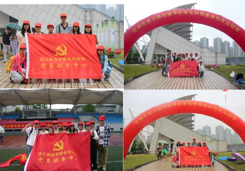 继5月2日的杨绫子学校之行后, 5月19日至20日,会计学院党员服务中心携手学生第二党支部和第六党支部,来到拱墅区体育场,为参加杭州市第五届培智学校学生特殊奥林匹克运动会的杭州杨绫子学校的小运动员们加油鼓劲,与他们度过了充满情趣的二天。
