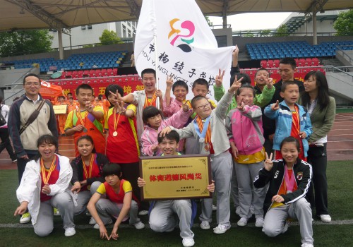 最后,志愿者们和运动员们留影纪念。临走时,那些孩子们不忘和志愿者们道别“哥哥姐姐再见”,两个调皮的男孩还跑来和志愿者们一一握手道别。