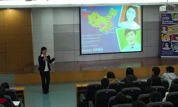 2012年3月27号下午,四大会计师事务所之一的毕马威(KPMG)在我校学术中心第四报告厅举办了2012精英计划宣讲会。