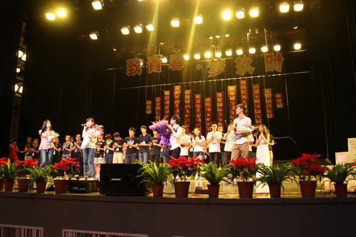 随着毕业生微电影的感动上演、院歌《会乐梦》的奏响,晚会在期待中瞩目上演。大幕拉开,乐队一曲《笑忘歌》瞬间点燃现场气氛。汪祥耀院长代表全院老师对 2013届毕业生表达了深切的祝福,随后学院五位领导集体诗歌朗诵《今天,我祝福你们》,以真挚的情感诉说着四年短暂深刻的相聚时光。