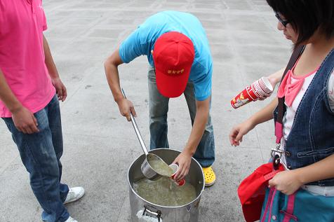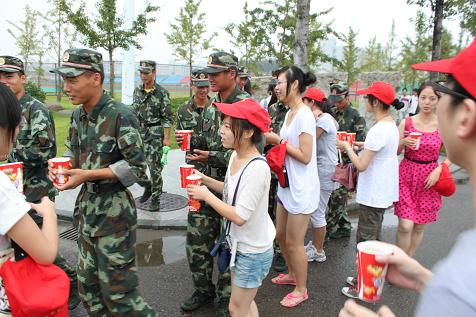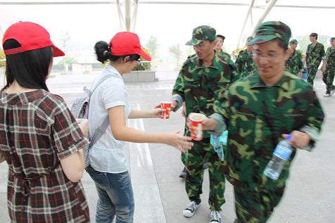 12日上午,会计学院各支部学生党员代表来到新生军训场地,为他们带去了早已准备好的绿豆汤。此时,正值新生们刚刚结束10公里的拉练返回,精疲力尽的他们在喝到冰凉可口的绿豆汤后,脸上充满了惬意的笑容和意外的惊喜。