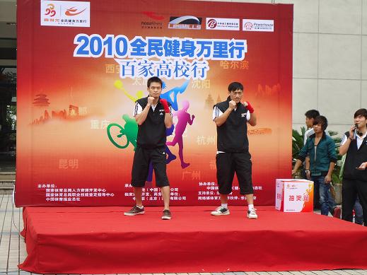 “想不想和刘翔一起跨栏?想不想和孔令辉打乒乓球?想不想与林丹打羽毛球?如果您想和奥运冠军切磋技艺,就千万不要走开!”伴随着动感音乐,主持人充满激情的演说拉开了本次活动的序幕同时点亮了青春飞扬的舞台。同学们纷纷积极报名,主动上台展现自我,争做健身达人。激情四射的走秀,挑战毅力的俯卧撑,强健有力的搏击操等表演一次又一次点燃了台下同学的热情,引来连绵不断的喝彩。