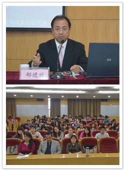 作为一个学者型官员,郜教授为学生们提供了信息量巨大而专业的讲座,2个小时的报告会,使到场老师和学生们获益匪浅。会后汪祥耀院长表示:“郜教授的学术 报告对会计学子未来的职业发展选择有很大帮助,非常感谢为我们学校提供这种机会。作为学校的兼职教授,希望他的学术力量能带动会计学院更成熟的发展,落实 学科建设的龙头地位,诚挚欢迎郜教授再次来学校开展交流报告。”(叶洪婷。2013年5月17日。)