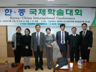 2013年4月10日,“中韩国际学术会议”在韩国国立庆尚大学隆重召开,韩国国立庆尚大学经营学院院长郑奇汉教授、副院长金达坤教授等四十余位中韩学者参加了此次学术会议。我院吴俊英教授、潘自强教授等应邀参加了会议。学术会议由经营经济研究所所长郑弘烈教授主持。