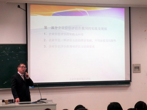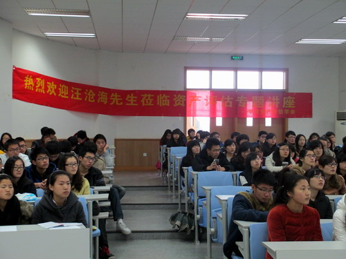 3月26日下午,会计学院211教室座无虚席。应我院学生资产评估学会的邀请,浙江坤元评估有限责任公司总经理汪沧海先生,为在场的我院资产评估专业学生做了有关市场法在评估实物中的应用的精彩讲座。