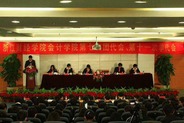 在会计学院党总支的正确领导和校团委的亲切关怀下,2010年11月20日,浙江财经学院会计学院第七次团代会、第十一次学代会在学术四号报告厅隆重举行。这是一次承前启后、继往开来的大会。会计学院党总支副书记张红英、校团委书记沈鑫泉、院分团委书记张淼、校学生会主席王鸿、浙江大学经济学院学生会主席张妍玫以及各二级学院分团委书记和学生会主席等均莅临本次大会。