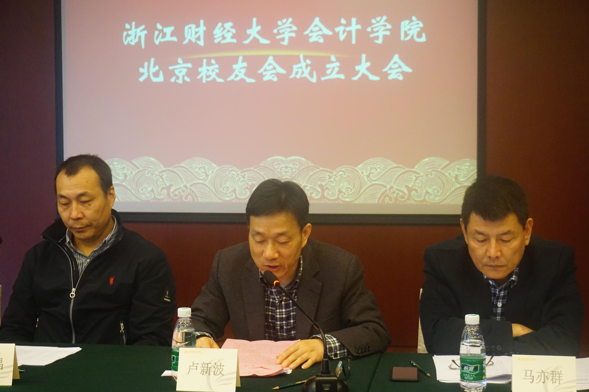 李金昌书记首先介绍了学校情况及未来发展规划,对各位校友的到来表示由衷的感谢。卢新波副书记宣读了贺词。黄建新副校长从组织建设,工作载体等四方面介绍了校友会建设情况。张将勇校友代表杭州(省直)校友会对北京校友会的成立表示热烈的祝贺。会计学院张红英书记代表学院向大家介绍了北京校友会的筹备情况及会计学院近几年的发展情况。