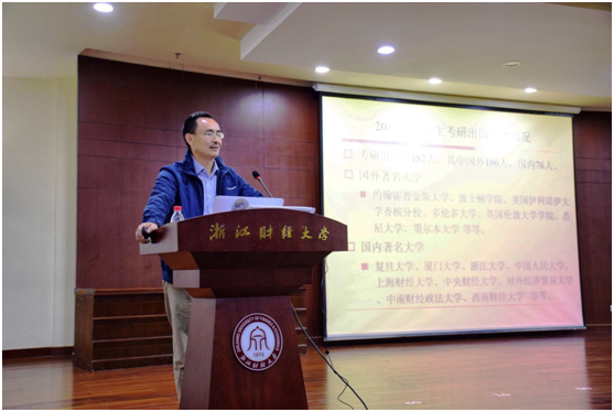 首先,由朱丽娟老师开场主持并强调本次大会的会场纪律和会议主题。随后,邓川老师对我院历年的考研情况作了简要总结回顾,分析了当前会计从业人员状况,指出只有高层次的财会人员在就业市场上才具有较强的竞争力,进一步强调了考研的重要性。因此,邓川老师建议大家抓住当前合理规划,明确高层次财会人员的实现途径。勉励大家积极考研并提出殷切嘱托:“人生是一次马拉松,起跑快慢没那么重要,你的成就取决于你能跑多久!”